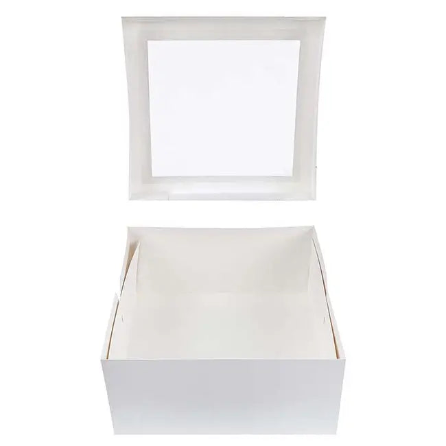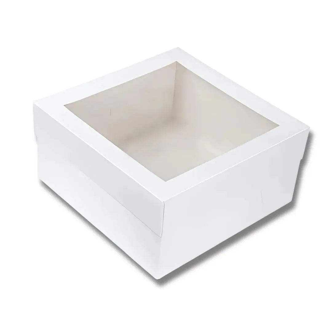 Λευκό κουτί υψηλής ποιότητας, ιδανικό για την ασφαλή μεταφορά και κομψή παρουσίαση τούρτας και άλλων γλυκών. Κατασκευασμένο από χοντρό πολυτελές χαρτόνι, εγκεκριμένο για άμεση επαφή με τρόφιμα, προσφέρει σταθερότητα, αντοχή και αισθητική.
