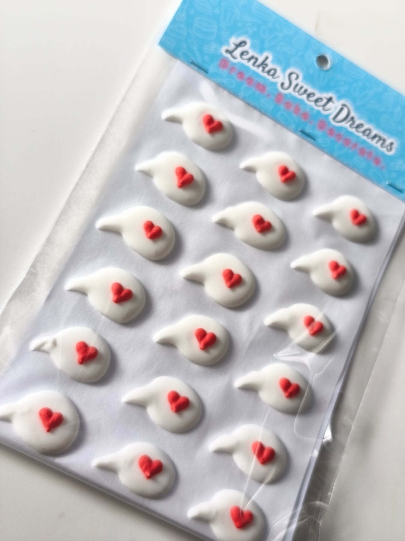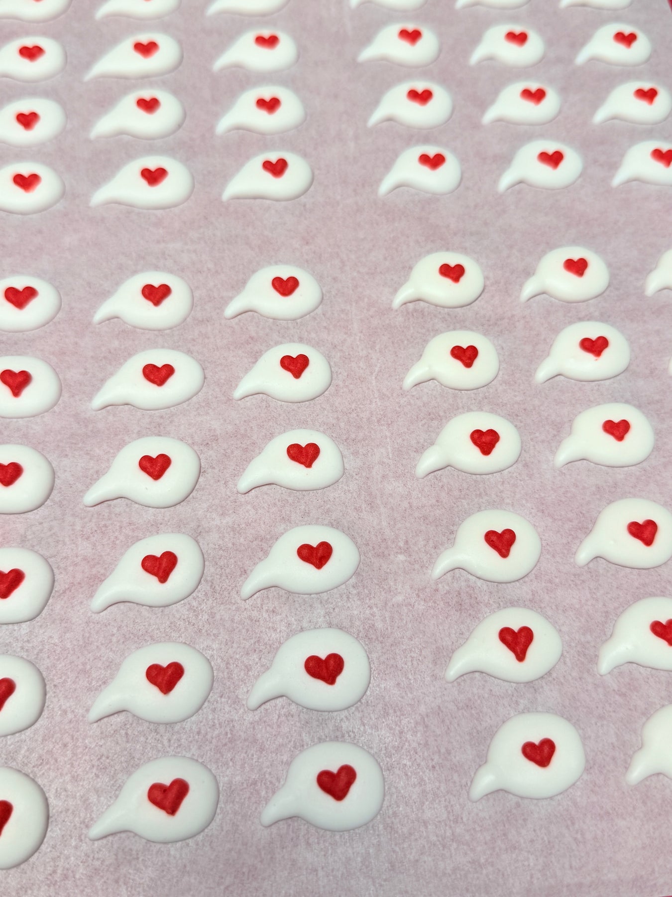 Βρώσιμα μηνύματα καρδούλες από royal icing, χειροποίητες (18 ή 72 τεμ.)