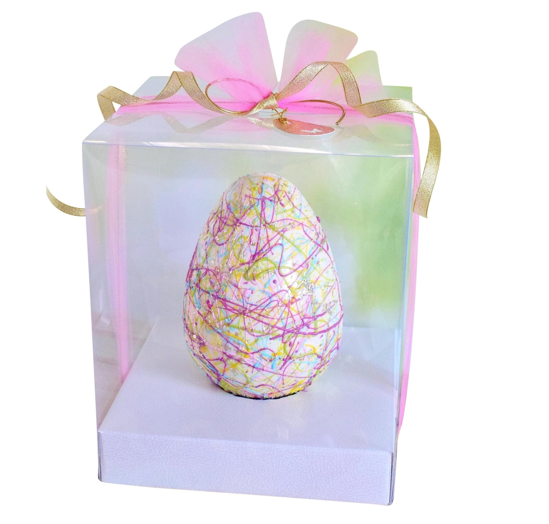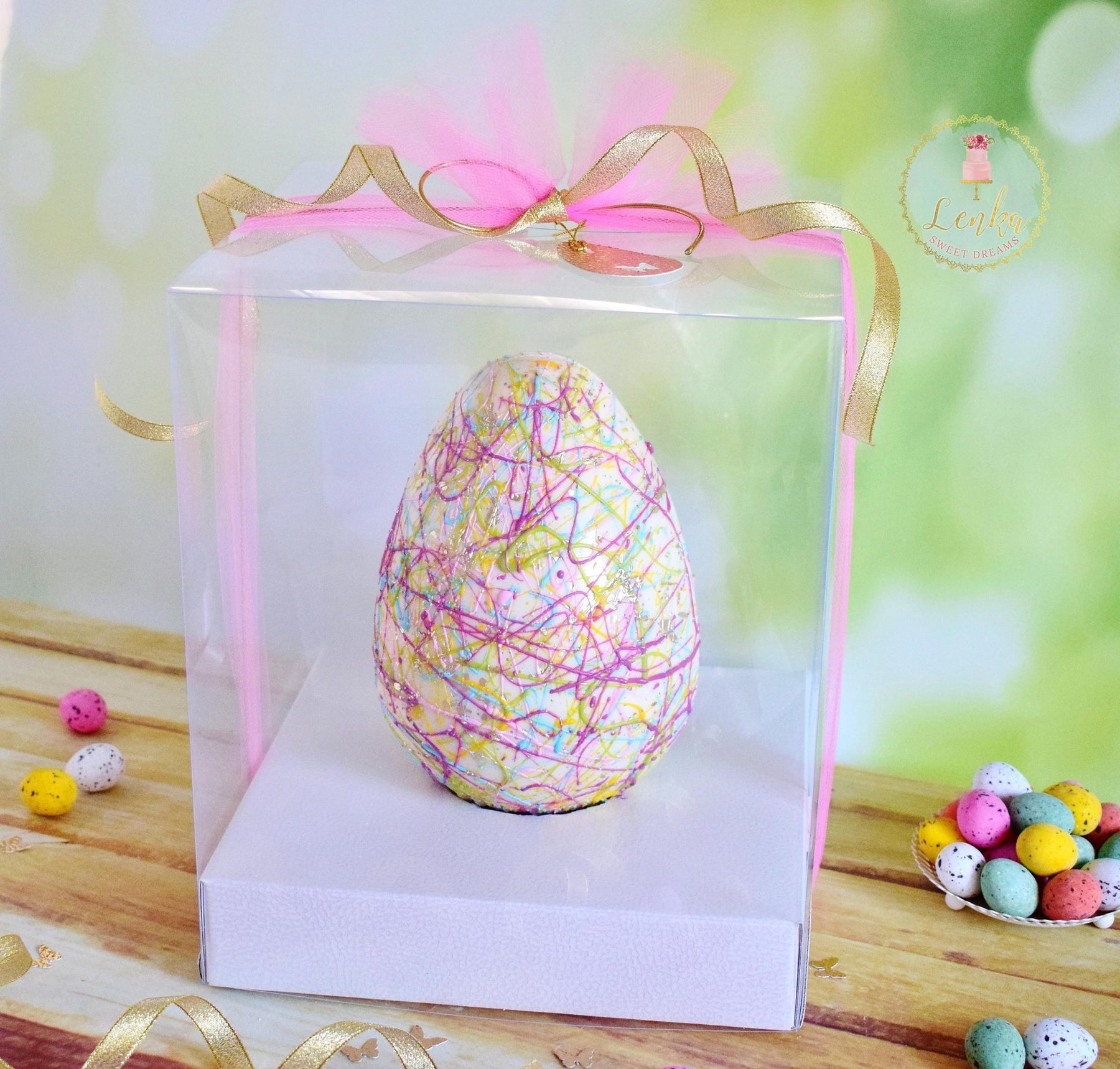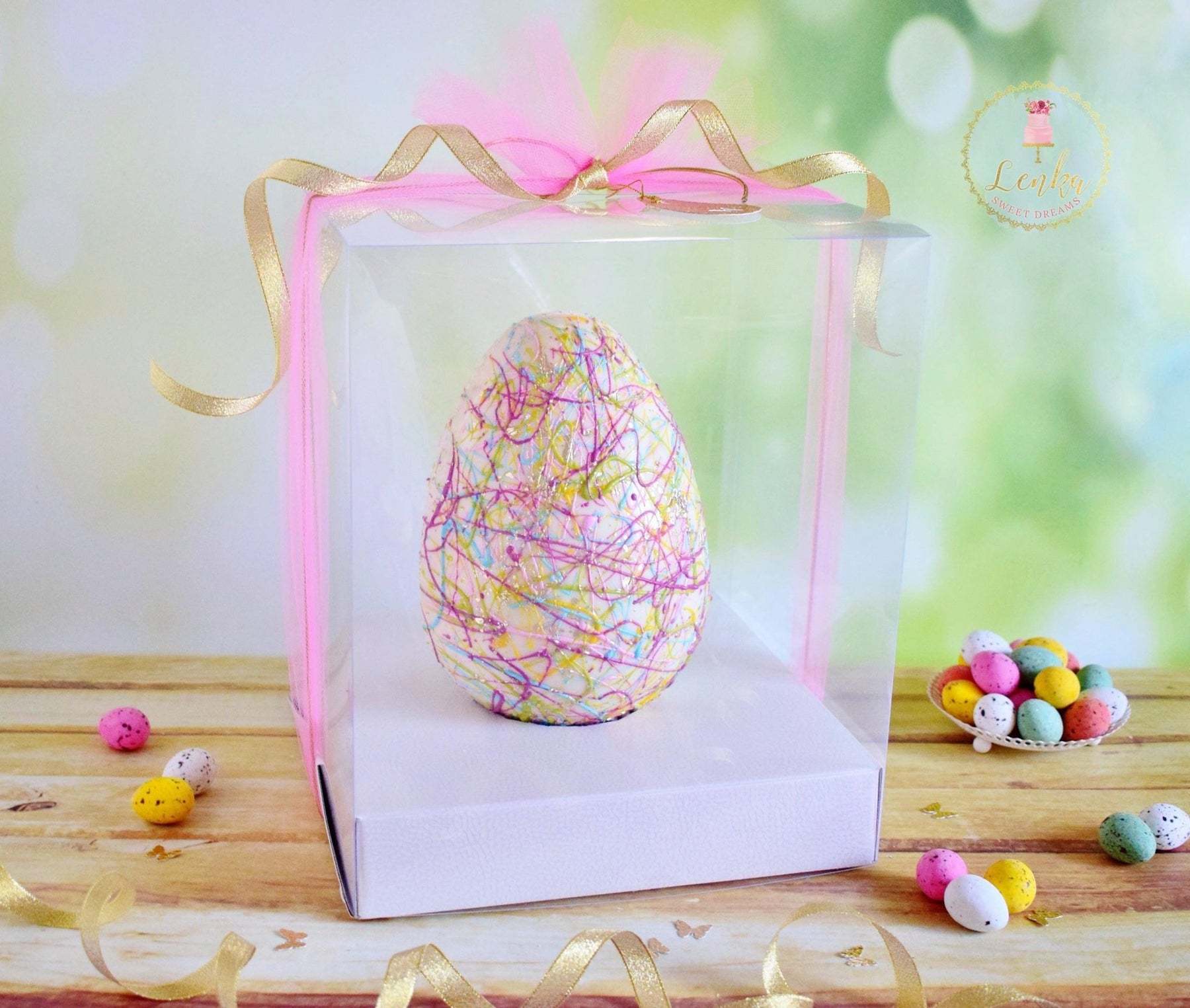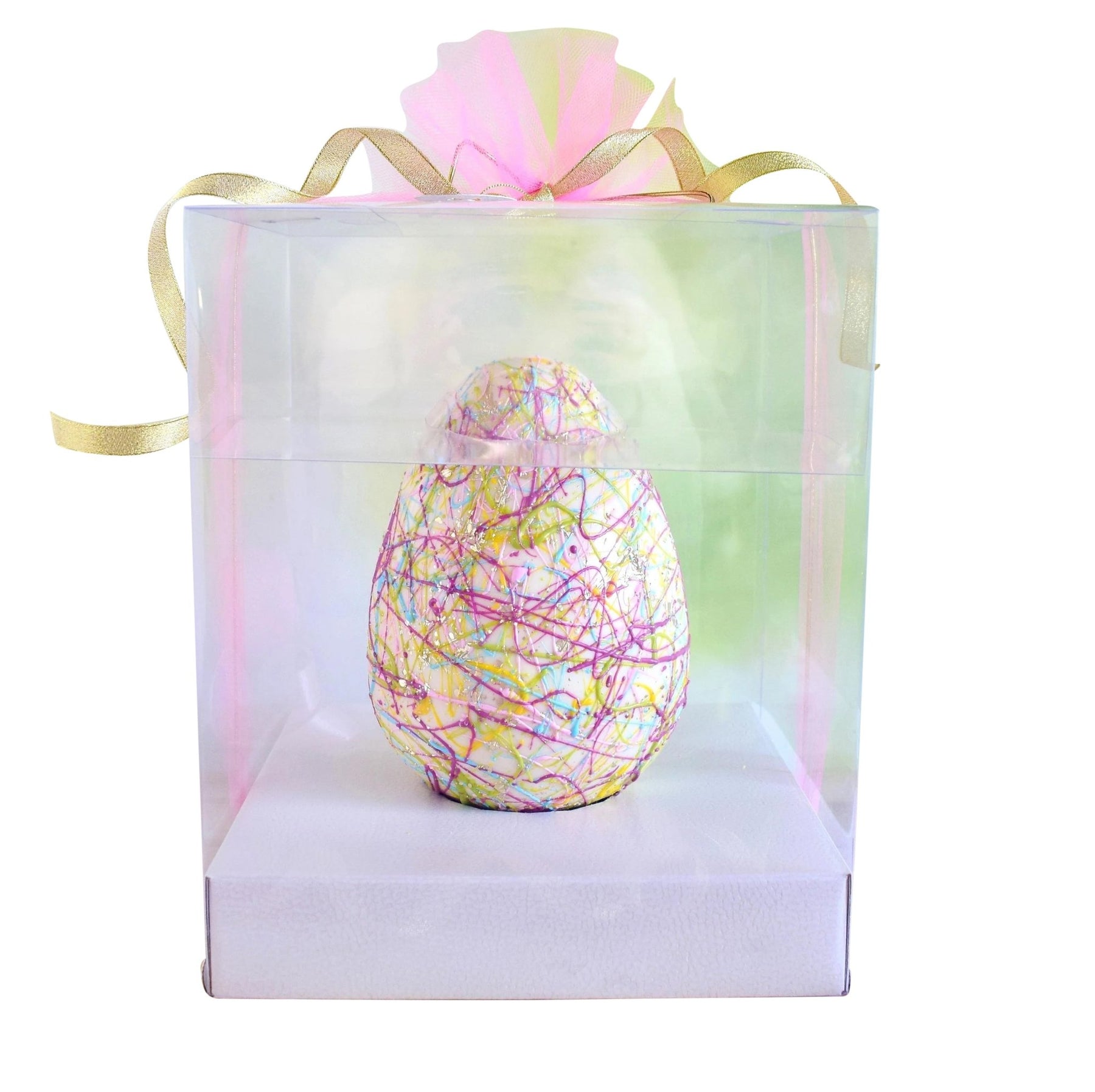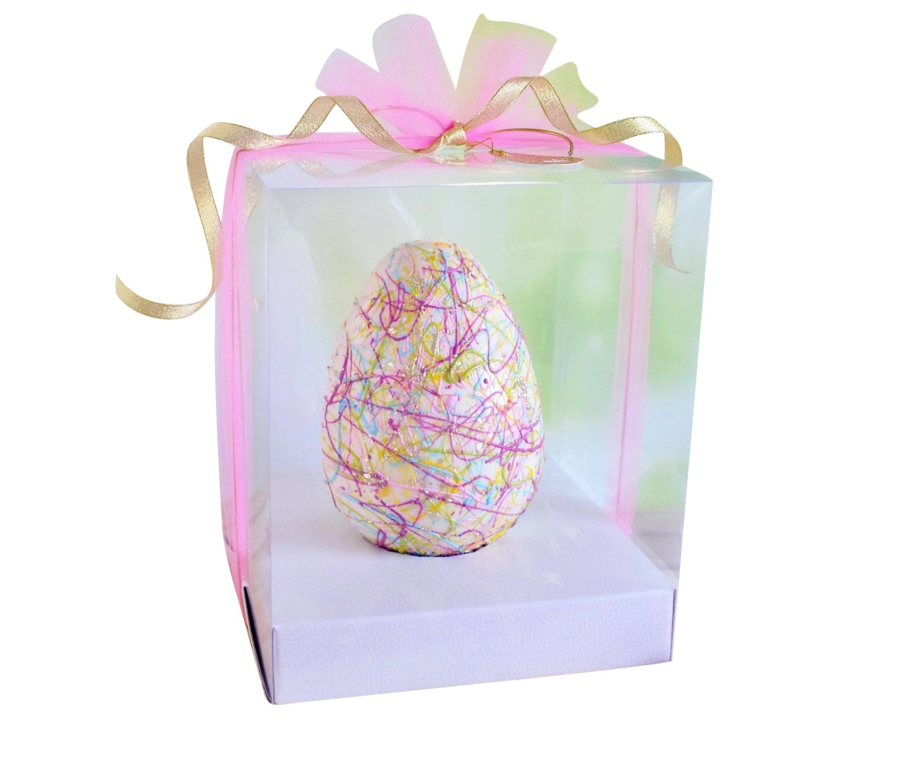Κουτί διάφανο με βάση για μεγάλο σοκολατένιο αυγό λευκό δέρμα 25 x 25 x 30 εκ.
